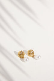 goldfarbene Ohrstecker in Muscheloptik mit Perlenverzierung